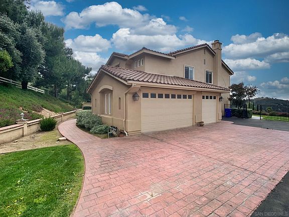 Escape to paradise in this stunning, gated, corner lot sanctuary! Enjoy breathtaking sunset and mountain views, or indulge in the luxury of a massive primary suite with ocean and city light vistas. Featuring a formal living room, dining room and family room make this home spacious and welcoming. Outside, find serenity in the tropical oasis pool and spa, surrounded by lush landscaping. With a huge wrap around patio, 3-car garage, and over 2 acres of fenced land, this dream home is a rare find!