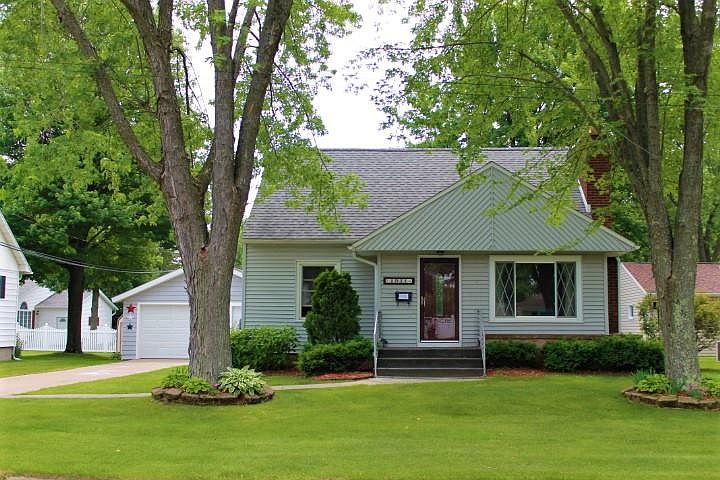 This well maintained 3 bedroom, 1 bath cape cod is move-in ready! Main floor features an updated kitchen with plenty of cabinets and a built in desk area, dining room, living room with wood burning fireplace, bedroom with double closets and full bath. Upper level features 2 spacious bedrooms. Arched doorways on main floor and hardwood floors throughout most of the home add to the character. Unfinished basement with laundry area and extra toilet, plus plenty of storage space. Beautiful back yard with small pond (bridge not included), covered back patio and an oversized one stall detached garage.