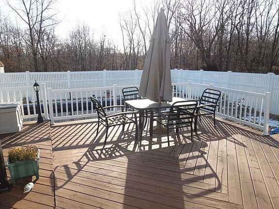 Wonderful home for everyone! Large, fenced-in 1.49 acre lot with mature trees, fire pit, and plenty of room for kids and dogs to run! Heated in-ground pool surrounded by a new aluminum pool fence and adorned by a spacious multi-tiered deck, freshly resurfaced. 4 bedrooms, 2.5 baths, full finished basement with egress. Basement remodel and new roof completed in 2017, stub in for wet bar. Granite kitchen, all appliances including washer/dryer. Spacious 2 car garage, plus pool shed and 10 x 20 outbuilding ready for your toys.