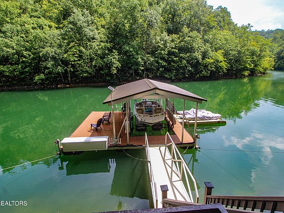 Beautifully updated lakefront home waiting to welcome you to your own quiet retreat on Norris Lake! Don't miss out on this rare opportunity to own a lakefront home in Hickory Point. 470' of shoreline with year round deep water in cove. Covered dock with swim deck and 5000lb Roto lift boat lift & 2 EZ Port Max 2i Jetskin ports. Private electric tram to the lake (no steps)! Home features 3 bedrooms, 3.5 baths, cathedral ceiling on the main and high ceilings through out. New kitchen cabinets and stainless steel appliances, newly painted, new flooring, new roof, deck, siding, trim, gutters, downspouts, eaves & new driveway that can accommodate several cars and trailers. This 3 story home feautres 3 levels of decking with views from each level. Flagstone patio with seat wall, chairs and firepit to convey. Most furniture and decor to convey. Located only 8 miles from Maynardville and less than 30 miles from Knoxville. Hickory Point features a club house, swimming pool, marinas and boat ramp.