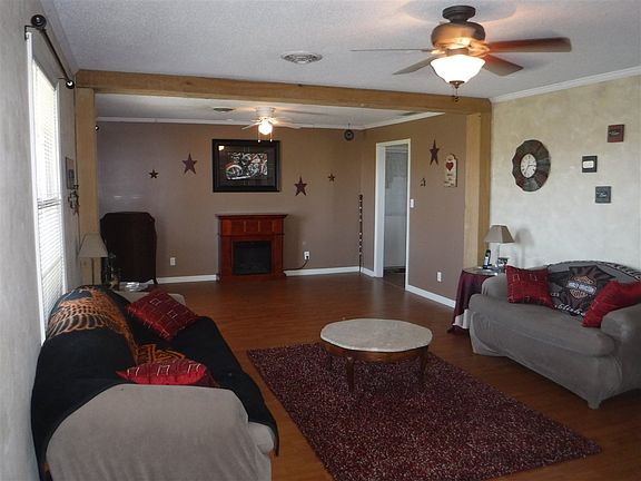 Beautiful spacious remodeled ranch home! Huge kitchen & living rooms. Home has been completely redone over the last few years to include laminate flooring, tile in baths, paint, cabinets, vanities, counters, roof, hot water heater etc. Nice tile backsplash in kitchen. All appliances kitchen appliances remain with home & electric fireplace. Large bedrooms. Nice acre lot just minutes outside of town. Hot tub stays (seller has not used since 2011, unsure of condition but worked the last time it was used.)