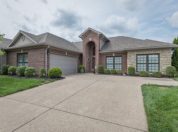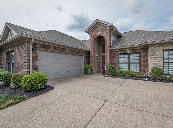 Welcome to 1931 Rivers Landing a beautiful appointed home located in the gated community of Rivers Landing. The front entrance features high ceilings and creates and elegant entrance. This home features a large open floor plan with a dedicated formal dining area, living area, and kitchen with granite counter tops, a gas stove, built in wall oven and microwave, refrigerator and dishwasher all stainless. There are a nice amount of cabinets that offer great storage, and a built in beverage area with a wine glass rack. Off the living area is a sunroom with an abundance of windows that looks out to an outdoor living area that is completely private with a brick wall and features a brick large fireplace. There are two bedrooms both spacious. The master bedroom has a large walk in closet and the master bath has a double vanity sink and walk-in shower. There is a second bath in the hall. The laundry room has built in cabinets and is roomy. A two car garage is attached and is spotless with epoxy painted floor. This home is close to Oldham County schools, and conveniently close to fire station. The owner has completed many updates and maintenance since their purchase. Ask for a complete list of updates. Schedule an appointment to see this beautiful garden home with carefree living!