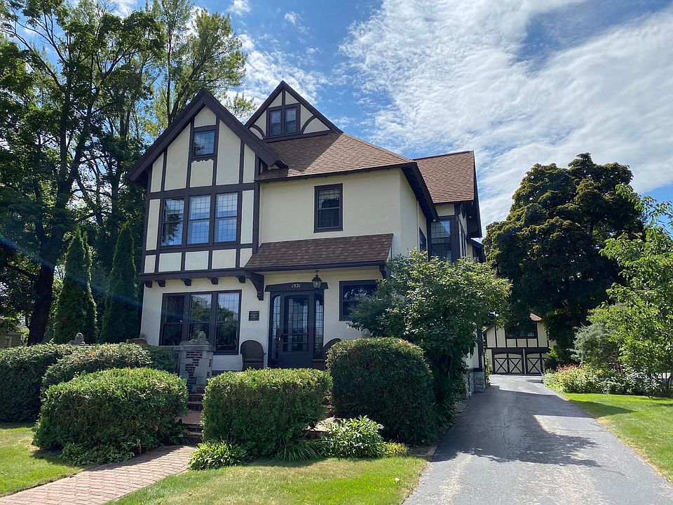 Beautiful, Historical English Tudor with a great view of the Menominee River!! This 5 bedroom, 3 bath, 3 story home was placed on the National Register of Historic places by the U.S. Dept of Interior in 2015. There are 2 staircases that lead to the 2nd floor. The 2nd floor has oak hardwood flooring and the 3rd floor has maple hardwood flooring. The master bedroom has 9' ceilings. Master bath has a whirlpool tub and cedar lined closet. 3rd floor bedroom has a full bath. Nice size kitchen with snack counter and quartz counter tops. The Living Room has 9 1/2' ceilings. Finished 24' X 34' second story over the garage, perfect for a Hobby or Craft Room. Crown molding, leaded glass window.