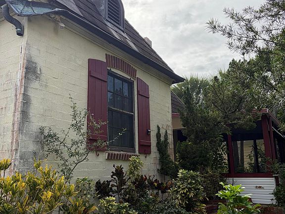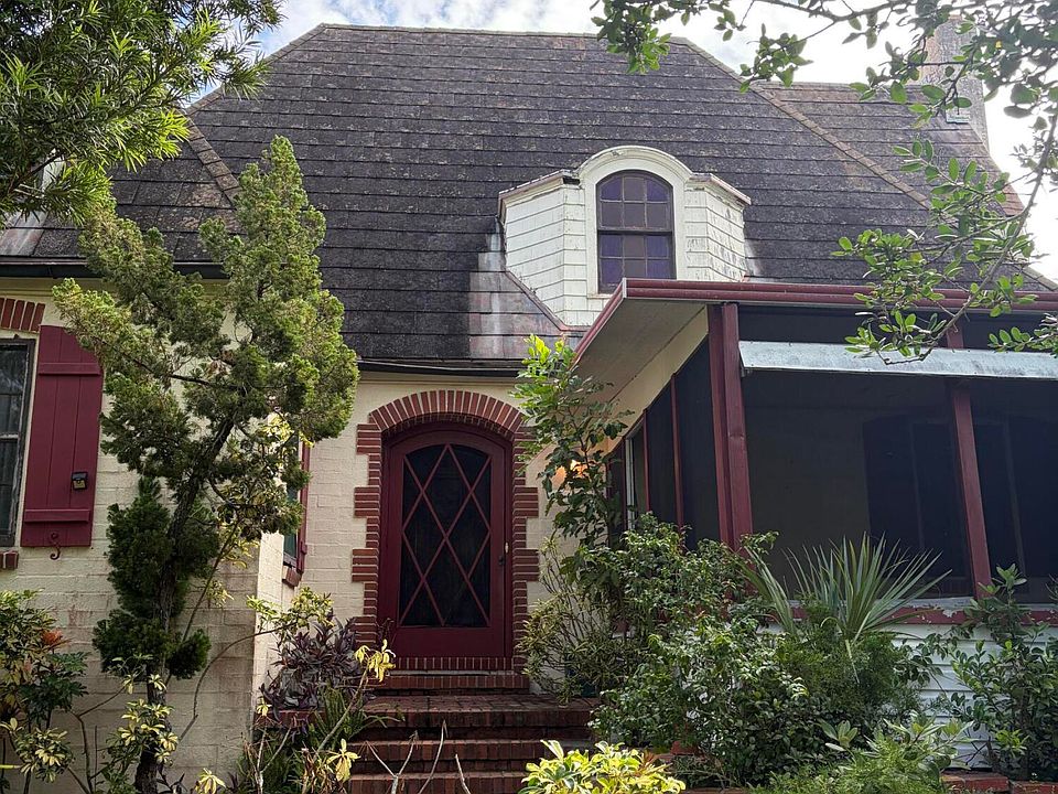 Original character and charm in this 1950's home on a hill near the beach in Daytona Beach with rear entry garage on the backside of the hill. The main floor has the kitchen, living room (with fireplace), dining room, full bathroom a study and wooden floors repurposed from a ship. The second floor has two bedrooms, (1 with a fireplace) and a full bathroom. The basement has a bedroom, half bath, workshop and two car garage with lots of storage. This home has experienced hurricane damage which as yet to be repaired. This home will need to be completely remodeled throughout. Additionally, there is a LIVE, WILD BEES NEST on the rear of the property. DO NOT APPROACH or GO NEAR THE BEES. They are aggressive. All measurements and information are believed to be correct but not warranted.