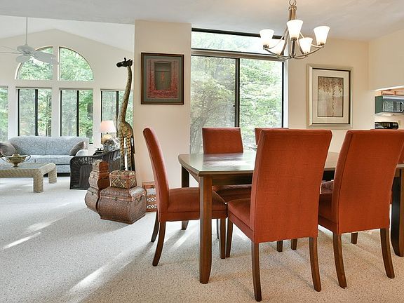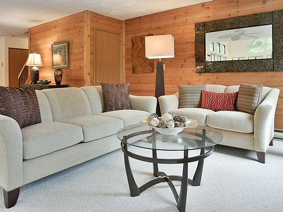 Here is a gorgeous 4 bedroom, 3 bath townhome here at Hidden Valley Resort! This is a super rare end unit, with an addition off the living area, which provides another family room/sun room. All this overlooks the ponds in South Ridge. This townhome is well over 2000 sq ft, has cathedral ceilings in kitchen with newer stainless steel appliances, wood burning fireplace, master suite upstairs with it's own deck over the ponds, two 1st floor bedrooms, full bath and laundry room make one floor living reality, new lighting fixtures, freshly painted exterior and all of this is within walking distance of the South Ridge Center, which has the larger pool, basketball court, playground and the new bocce court. The property is selling mostly furnished with a few exclusions. HOA takes cares of the landscaping, snow removal, garbage, 24/7 and of course the amenities. Find the perfect 2nd home here at Hidden Valley!