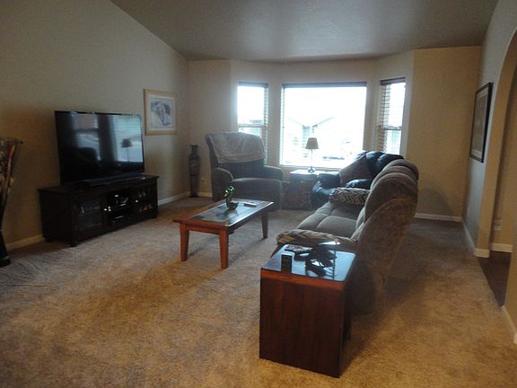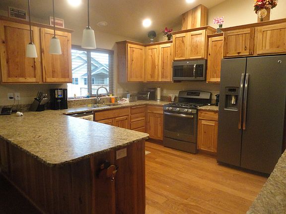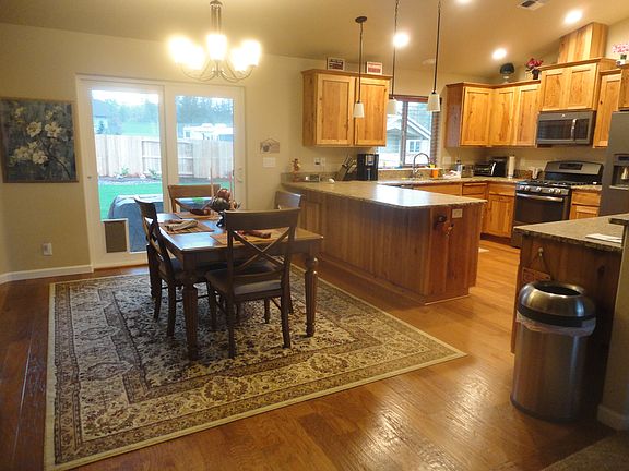 Absolutely stunning Brand New Kirk Chapman home located in a very sought after subdivision. Large .23 acres, professionally landscaped in front and back with sprinklers and drip. Three bedrooms and two bathrooms, 1829 sq. ft. Kitchen w/granite counters, all kitchen cabinets have pull out shelves, hickory floors and cabinets, new appliances. Vaulted and coffered ceilings. Ceiling fans in front room and master bedroom, Plenty off storage space, Walk in pantry, gas fireplace. Nice covered patio with a brand new Tuff Shed (10x14), brand new custom wooden blinds thru-out, 2 car finished garage, garage as sink with hot and cold water, has RV parking. Owner moved in Jan. 2016 Has a 6 foot jetted tub . Home has a two year warrenty. Call Howard or Valerie at (541) 244-1419. Natural gas barbeque included. Dryer hookups are for gas and electric.