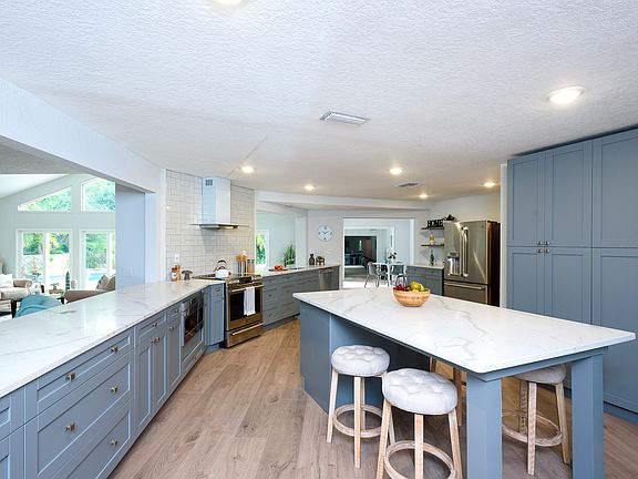 Beautiful Dunedin Estate on a Wooded Private 1.25 acre Lot. Nestled on a Quiet secluded street offering Compete Privacy! Long Drive leads to Covered Porte-cochre with Lighted Planter. This Impressive 5,600+ Sq Ft Home has been COMPLETELY Updated and features 5 Bedrooms, 3 Baths plus Den. Double Door Entry into Foyer. As you enter you will Experience the Stunning "Wow" Factor with Floor to Ceiling Windows. Entertain with ease in the Enormous Living & Dining Room Offering an Open Feel- Shows Light & Bright! High End Water Resistant Wood Like Flooring. Enjoy a Chef Gourmet Island Kitchen Complete with Quartz Countertops, Soft Close Cabinets, GE Cafe Series Glass Top Induction Range/Convection Oven with Wifi Technology, Built-In Drawer Microwave, Stainless Steel Appliances, French Style Refrigerator with Keurig Coffee Maker, Large Center Island, Breakfast Bar, & Pantry. The Master Suite offers a Quiet Retreat with Room Sized Closet & Organizers. Luxurious Master Bath with Quartz Countertops, Dual Sinks & Step-In Shower. Bonus Room could be an In-Law Suite which features a 2nd Quartz Kitchen, Bedroom and Private Bath. This Home is perfect for a Multi Generational or Blended Family. Private Patio with Large (resurfaced) Sparkling Pool & Covered Patio. Room to Park your R/V or Boat. Updated Electrical Panel, New Insulation, All New Windows & Doors. The Perfect Location to all Tampa Bay has to offer. Just Minutes to Shopping, Schools, Dining, Beaches, Trendy Eateries, and Tampa International Airport.