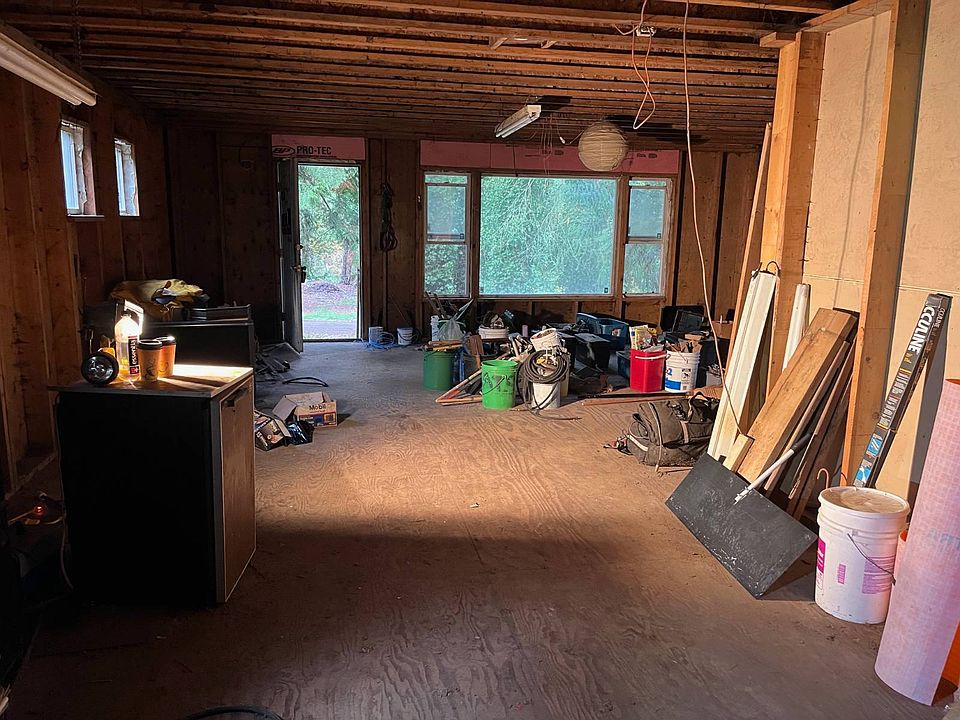 This house is a solid structure , two stories plus a concrete basement,two sky lights ,heat pump/airconditioner. The inside needs finishing bare studs on all the rooms. It has many tools and sheetrock and insulation , plumbing fixtures , tubs of nails and screws for finishing the home . Water is connected and has power with a power pole is in place. the house has a expired septic design. The county has assessed it at near $194,00 it is listed at $185,000 as is.Make an offer on this Property. We have cleaned over a thousand of pounds of stuff from the house!
