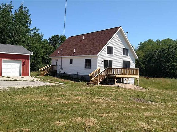 13 acres with a 26 foot deep spring feed pond w/bass and blue gills. Open concept living, dinning and kitchen 24.6 x 21. heated pole barn/garage 30x60 with a 15x60 lean-to attached w/wood.