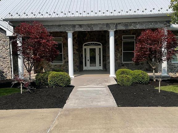 Stone House Acres Estate. Luxury self sustaining 41 acre estate. Multiple possibilities: farm, event venue, commercial. Property includes ~6,287 sq house with 5 car ~2,145 sq ft garage complex; attached ~1,007 sq ft apartment; ~3,100 sq ft greenhouse; ~160 sq ft outbuilding; ~8,307 sq ft luxury climate controlled modern metal barn; ~625 sq ft kennel with fencing; ~420 sq ft 4 stall construction shed PLUS 2 stocked ponds, 3 grazing pastures with new fencing, woods, and cobblestone patio and outdoor living space. Special features include solar panels, a windmill, underground water bladders, well, city water, propane tanks, and generators. Property boasts beautiful concrete driveways, a clean dirt road circling the woods, and groomed landscaping. Nice privacy, yet 5 minutes to Lewisburg. Set at the base of Greenbrier Mt in the "destination" tourist mecca of WV, Stone House Acres Estate is ~3 miles from the popular Greenbrier River Trail, Greenbrier River, and county seat, Lewisburg. The Greenbrier Resort in nearby White Sulphur Springs is ~10 minutes and offers a complete array of amenities including world class golf, spa, a casino, artist colony and deluxe lodging. West Virginia School of Osteopathic School and New River Community and Technical College offer educational opportunities in Lewisburg. Enjoy a variety of culinary experiences, wonderful boutique shopping, arts via Greenbrier Valley Theatre and Carnegie Hall. The area retains its agricultural roots and historical prominence in the center of Appalachia while providing the modern conveniences of I-64; Greenbrier Valley Airport, and AmTrak. Additional Information: 1931 Stone House Rd, Caldwell, WV 24925 The House Main Level Styled with plenty of open space living, the house lends itself to creative decorating opportunities. The Foyer/ Living Room entrance is showcased with the oak hardwood flooring and a 12' X 4'6" outdoor view window. This entrance sets the stage for the light filled large rooms. "Gather in the kitchen" is the theme for the kitchen design which includes a highly functional kitchen with 2 dining/cook islands (13 ft and 7 ft), a potential nook space, and a lounge area with a cozy Blaze King wood stove. Lovely cathedral ceilings, 9 ft arched doorways create a spaciousness. Stroll to the expansive 518 sq ft sunroom with 48 ft of windows overlooking the ponds and quiet countryside. The sunroom can be entered via French doors from the kitchen and could make a superb dining area, or entered from the main bedroom, creating a quiet space for morning coffee, relaxing, or a work space. The sunroom is so large, it can serve many purposes. A full bath is accessible from the sunroom/ living room entrance. The en suite main bedroom complex is ~639 sq ft. Three additional bedrooms are located on the main level. One with stone accents offer optional flex/office space. The other 2 bedrooms share a Jack/ Jill bathroom. A laundry room is located on the main level and there is direct access to the heated garage. Lower level. The large room open concept is carried to the lower level. The floors are 12 inch ceramic tile, easy to clean. The lower level is 2,832 sq ft heated space, includes a full kitchen, full bathroom, propane gas fireplace, a bunker style safe room, and 2 outside entrances to the outdoor kitchen, paver patio, and 17 ft round fire pit patio. Details for the house: 1. Wheatbelt Rolling Shutters installed on windows and doors. Excellent for heat/cool/ privacy. 2. Oak flooring is 2 1/4 inch wide. 3. Kitchen: oak cabinets, granite countertops, high mount dishwasher, large pantry, 2 islands, Ge Profile countertop range, 2 Frigidaire Gallery wall ovens, and Frigidarie Gallery dishwasher. 4. Sunroom- Full view windows with cranks and screens. 5. Main bedroom: 2 walk in closets each 6 X 8. Main bath: Tiled bath, jetted tub, tiled shower, 2 oak vanities with Corian counters. 6. Lower level: 3 large rooms with full kitchen and full bath and additional half bath. Storage room and safe room with 2 large Champion safes. (owner is researching combination) 7.Garage complex is divided into 2 sections. Section 1 (2 car oversized garage) attached to main part of house. Section 2 (3 car oversize garage) also accessed from main part of house but thru a breezeway. Section 2 roof has solar panels. 8. Apartment. Located above the 3 car garage, the apartment has privacy from the main house, The apartment consists of a living room, kitchen, bedroom, and full bath. Large windows provide nice sunlight. 9. Metal roof. 10. Elaborate concrete driveway and parking area. Outdoor living area: 1. 2 Rooms have French doors which access lower level. Main level accesses living area by steps from the breezeway. 2. Professional landscaping with large stone accents. Beautiful viewing area for the ponds, woods, pasture. 3. Pergola covers with concrete counter bar (12 ft+20 ft). 4. Built in Vermont Castings Gas grill, storage area. 5. ~ 2,173 sq ft Ponds 1. Fish and ducks 2. Ponds can pump water out Greenhouse: 50' X 62' 1. Gutter system by Conley. All water from gutters and barn go into the Bladder system. 2. 4 entrances 3. Concrete floors 4. Fans/ Vented 5. Natural Gas- Nadsworth heat/cool system 6. Drains positioned for easy cleaning and watering 7. 7 10,000 Litre Aquaculture fiberglass tanks The Barn- A highlight of the property, the barn, ~8,307 sq ft, is designed for multiple uses and could be used as an event center or as an agricultural epicenter. The barn (~7,962 sq ft) is heated and cooled, has 6 large bay doors, 2 man doors, concrete floor, electrical room, a car wash, a full kitchen with gas stove, 2 bathrooms, finished 2,418 sq ft room with T-111 siding, and a 1500 sq front to back bay. Ceilings are high with LED lighting. Storage for tractors, RVs, etc. Barn roof has large solar array on one side. Gutters are collecting system for underground bladder system. Underground Bladder System 10,000 gallon water bladder dedicated for the barn; a 6,000 gall