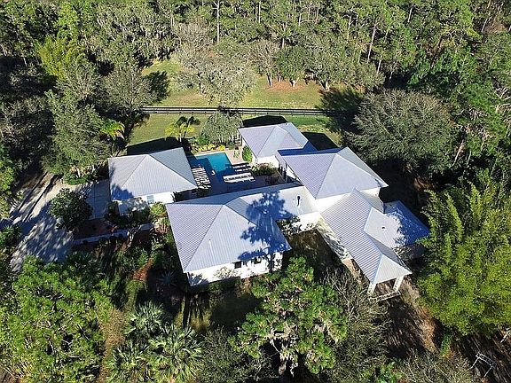 Nestled in the heart of The Forest at Panther Ridge you will discover Johnson Manor, an intensely private 11.75 acre gated estate that combines the perfect blend of mature oak, pine & lush Florida landscaping. Once you pass the personalized gate, the paved winding driveway takes you to an impeccably maintained custom designed courtyard home that is 4082 u/air & features 5 bedrooms (3 w/walk in closets) 3 Spa Bathrooms, a family room w/soaring ceilings. The house is a courtyard styled home and wraps beautifully around the pool and spa area which has waterfalls and firebowls. The Owner's Suite & Spa bathroom boasts a large shower, whirlpool tub, a 10'x 16' closet, hardwood flooring & thermal French doors leading to the pool. The kitchen is sensational w/solid wood cabinets, marble countertops, 6 burner Dacor gas range, GE Monogram 42" built-in refrigerator & (2) refrigerator drawers in prep area, Bosch dishwasher, Thermador wine fridge, (2) 30" Dacor convection wall ovens, a bar area with Lube cabinets, porcelain/tumbled marble flooring, thermal sliders leading to the pool & walk in pantry. More To Love: Low E thermal casement windows, on demand hot water system, a Galvalume metal roof & 3 car garage. A 4600 sq ft custom garage was added with epoxy floors and built in medal cabinets and tool boxes. RV parking station set up along with LED lights and an outdoor sitting/cooking area. A new 2 stall horse barn was built in the horse pad as well as high grounds and cross fencing. Panther Ridge is a 4500 acre community with 15 +/- miles of hiking/bridle paths as well as 3 parks. Across the street is The Concession, a private golf & CC. Fine dining, entertainment & medical facilities can all be found next door at Lakewood Ranch.