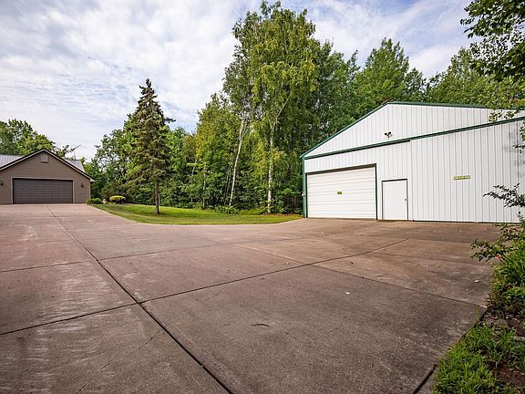 Welcome to your piece of paradise, where this unique property awaits. This stunning 3 bedroom 2 1/2 bath home features a master suite with a dual-sided fireplace, custom built-in bookshelves, a desk, and storage cabinets. The main floor laundry is located off the master suite with plenty of storage & counter space. The eat-in kitchen has a great view overlooking the backyard gardens, a center island, a desk, and an exterior door leading to the deck. Off the kitchen, you will find a dining room and living room with large windows and custom woodwork. The lower level is completely finished with a large living room, freestanding gas fireplace, walk-out patio, 2 bedrooms, 1 full bathroom, utility room/storage room, and an additional room which could be used as an office/gym/bar/playroom/craft room etc. There is also a 38x72 pole shed with concrete floors. This house is nestled on 13.45 acres surrounded by matured evergreens and flower trees along with an array of wildlife.