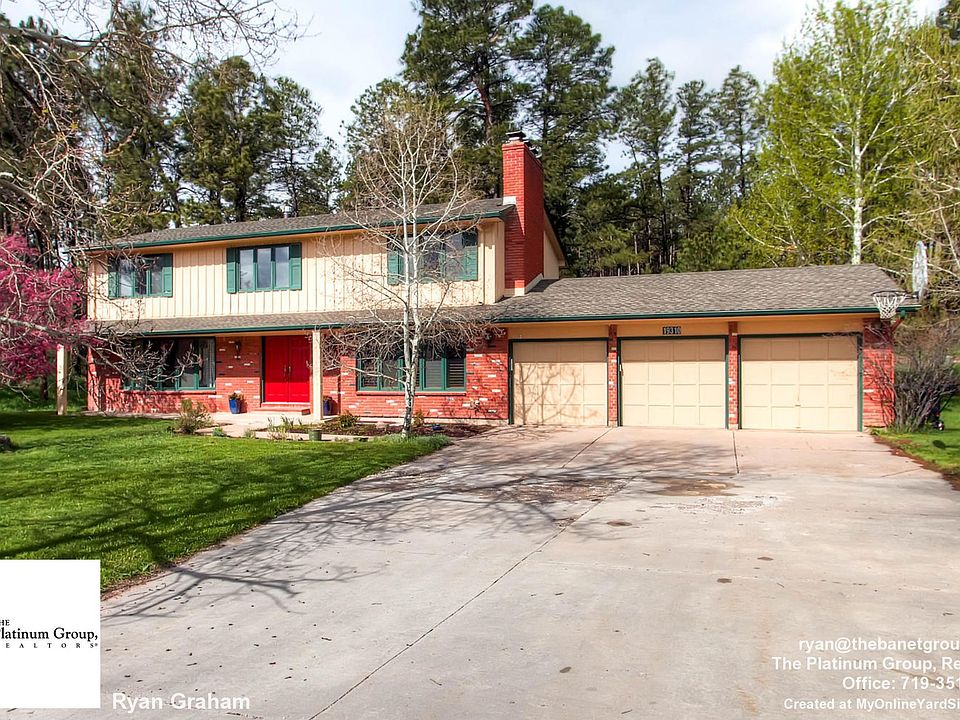 Live in the country, while still close to convenience! This beautiful home resides on a large lot with trees, professional landscaping, and plenty of privacy. Step in through the double door entry. Hardwood floors in the living, family, and dining rooms. Tons of natural light from the large plate windows. Curved wall with windows in the living room. Plantation shutters in the family room. In the large eat-in kitchen, you have some new appliances, granite counters and backsplash, electric, smooth-top range, plenty of cabinet space, and double ovens! Walkout from the breakfast room to the back. Ceiling fans and walk-in closets in the bedrooms. Large curved, cement patio in the secluded backyard, means you can experience the wandering deer and frogs chirping in comfort and privacy. Conveniently located to Colorado Springs and Denver, the nearby country club, fishing ponds, sledding hill, and 14 acre common area directly across the street for dogs and people, you'll never be out of something to entertain you!