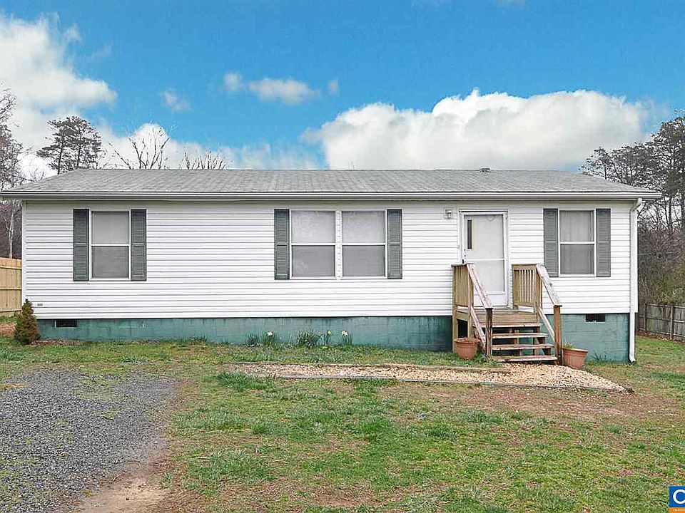 Charming and very well cared-for home in Gordonsville, with quick and easy access to anywhere in town. Three bedrooms, two full baths, living room with vaulted ceiling, dining area and full laundry room make this an easy-living home. Move-in ready; needs nothing. Recent new flooring, remodeled bathrooms, new interior paint, new 50 gal. water heater. Large level yard, off-street parking, fully fenced for privacy. Would make a great starter home. Block foundation with full crawl space for plenty of storage. Large rear deck. Convenient to shopping, dining and the historic Exchange Hotel. Walk to the BBQ Exchange!