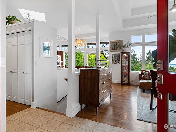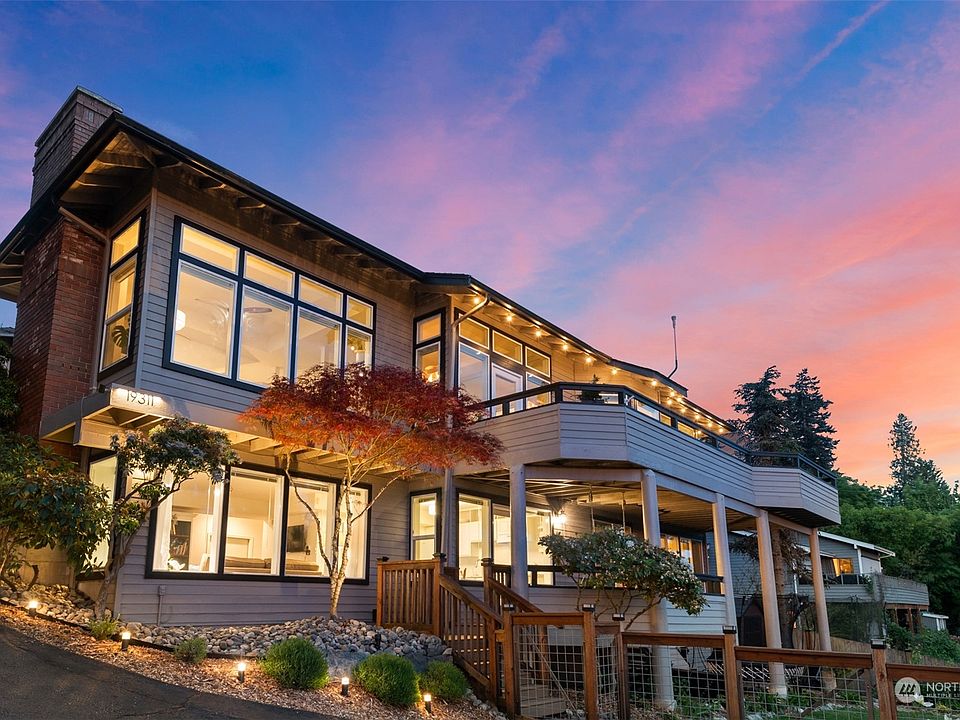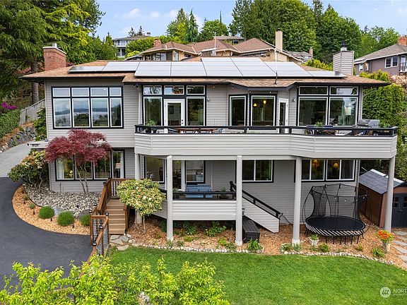 Savor westward Sound & Mtn views from this custom-built & thoroughly updated Thuesen home! Luxe details at every turn: new white oak floors, custom built-ins, tall ceilings, 3 fireplaces, motorized blinds, EV charging, new windows & 3 TimberTech decks. Wow-worthy kitchen outfitted w/ solid walnut cabinets, high-end Miele appliances, quartz counters & abundant storage, all thoughtfully laid out for the flow of daily life or hosting friends. Views & sunlight pour into 4 spacious bdrms incl primary w/ 5-piece bath. Permitted ADU great for guests, rental or generational living. Solar panels w/ Tesla battery provide 90% energy independence. Stunning fully fenced private oasis w/ mature dahlias, fruits, raised beds & rockery. Mins from downtown!