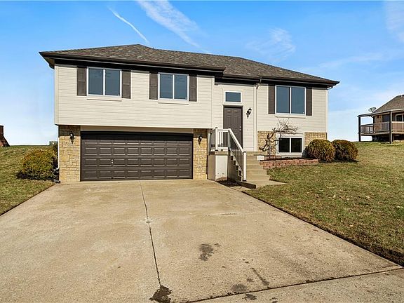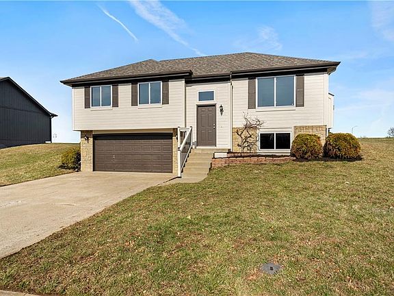 Welcome to 19312 Corbyn Lane! This stunning remodel is located in the Lake Meadows Subdivision on the north side of Smithville, MO. AAA Rated School District. This home is MOVE IN READY and has been completely updated, ready for you to call HOME! Featuring fresh paint inside and out. As you walk in you will be greeted with a beautiful entry way new carpet, flooring, and fixtures! On the main level you will notice new LVP flooring, fresh tile around your gas fireplace, raised ceiling, creating the perfect space for entertaining and enjoy family time together. Beautifully remodeled kitchen featuring granite counter tops, stainless steel appliance, breakfast bar offer extra cabinet space. Covered deck/covered patio off dining room with a flat backyard. New sliding glass door and new windows all throughout home! Brand new carpet in all bedrooms. New flooring and vanity in hall bathroom and master bathroom. Master bedroom offers spacious walk-in closet. Finished lower level offer an extra large space for rec room or man cave great for entertaining. Minutes from Smithville Lake, Golf Course, Trails, Parks, and other local amenities. Come see all this home has to offer!