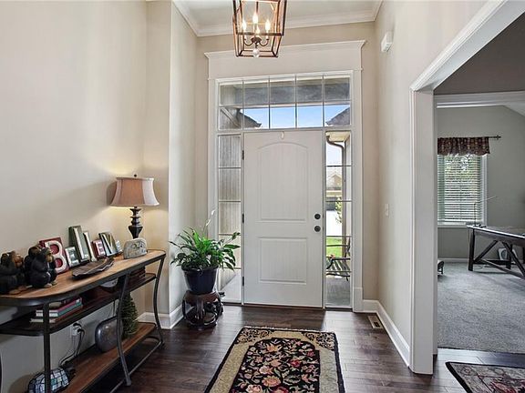 Look no more - this is the one!! Beautiful 4 bedroom/3 bathroom reverse story floor plan by Gianni Custom Homes. Very open great room, with fireplace & dining room space! Spacious master suite & second bedroom on main, plus 2 more bedrooms, and full bathroom in finished daylight LL! Master bath includes tiled shower & large soaker tub. Sizeable w/in closet off master bathroom. Home features a relaxing covered deck, hardwoods, ceiling beams, granite counters, and pantry. Desk area and drop off zone at garage entrance. Two laundry rooms- main & lower! Sprinkler system throughout the yard. Great entertaining home. Enjoy Brookwood Farms Neighbor to Neighbor social events. Easy access to city, with rural feel! HOA includes the pool, walking trails, fishing pond & neighborhood socials. Please wear booties as carpets have been cleaned.