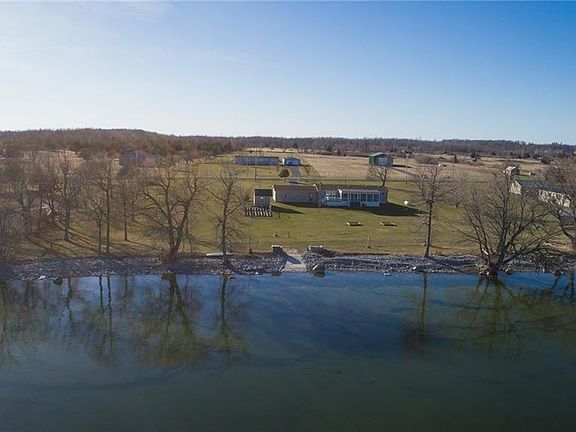 300 FT OF SPECTACULAR LAKEFRONT PROPERTY!!! This 3 bedroom 2 bath home is year round and completely move-in ready. The lg master bedroom has an attached en suite with shower and garden tub. The bright main living room features a propane fireplace and gorgeous water views. The 3 car garage is attached to the house by a mudroom for convenience in the winter months. Sit on the screened porch and enjoy the views! Second living room area could be used for many possibilities. The entire home has been refinished with new flooring, updated bathrooms, windows, and new kitchen. Outside there is a storage shed, on demand generator, and removable dock. The waterfront is level and perfect for swimming. Everything you need & want for year round Lakefront living is here! Call or text today!