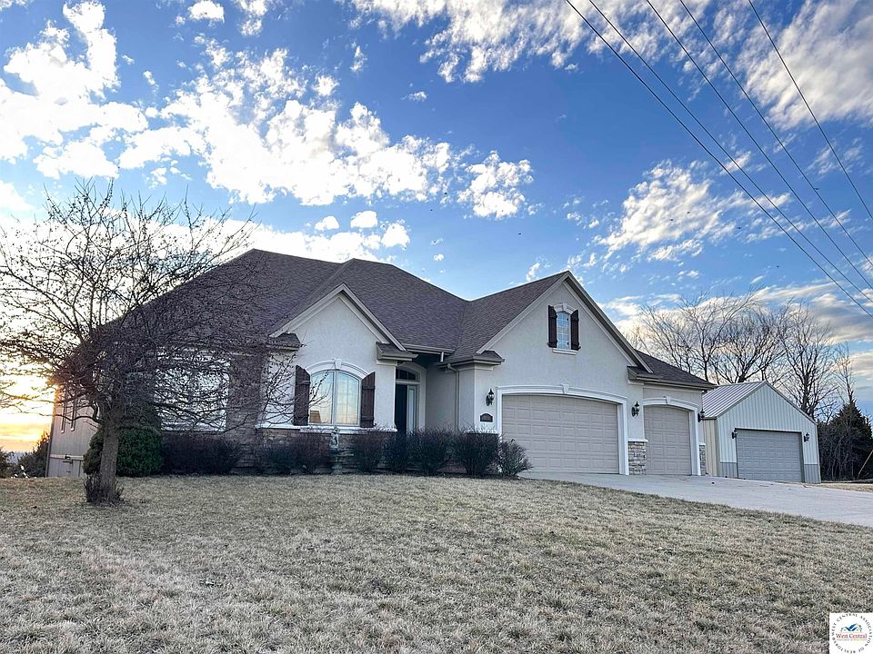 Beautiful Custom-Built home in Cedar Gate Estates in Warsaw! Everything you need is on the main level with an office, master suite and second bed and bath. Lovely custom kitchen with open dining area, granite countertops and beautiful rock fireplace to enjoy while enjoying the view of Truman Lake. Complete with pantry, laundry and garage access. Make your way downstairs to another bed and bath, large open family room, storage area and basement garage with workshop. This home was built by a local home builder and was their personal residence so the quality is above your standard finishes. Outside is stunning from the moment you pull up! The detached shop has its own separate concrete driveway The large yard has great landscaping and around back the home the home has the most amazing views of Truman Lake from both levels. Sterett Creek Marina is just across the highway with boat docks to keep your boat!