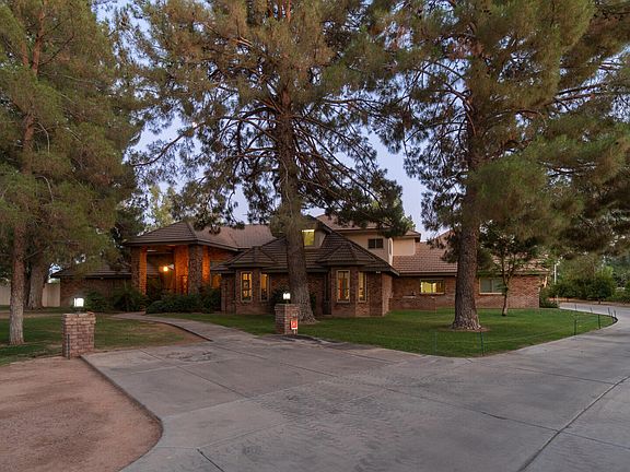 Drive through the electric gate to see this 5.76 acres w/ approx 2 acres irrigated and a 10 stall horse barn! This home has four bedrooms, den/office/playroom upstairs, 3 full bathrooms and 2 half baths located in the home. Eat in kitchen with 2 butler pantries, step down formal living room w/fireplace, full size wet bar, formal dining room, huge family room upstairs, front entry has birch ceilings, split master suite w/fireplace, and huge master bath. The backyard has a diving pool with a swim up bar w/seating, gazebo w/half bath and storage, built in BBQ area, 2 car garage, + 6 car detatched garage, hay shed, and lighted arena. This is a very unique horse property with lots of mature trees! This property is hard to describe. A must see!