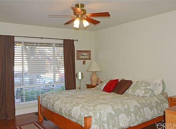 Fabulous Senior Community! This corner condo is loaded with lots of extras such as: Smooth ceilings, laminate wood flooring with foam underlay throughout except both bathrooms have ceramic tile flooring. Five inch baseboards throughout. Ceiling fans in living room, master bedroom, and both bathrooms. Both bathrooms have windows to the outside, (only floor plan with a one car garage that has a window in the bathrooms). Solar tubes in the living room and kitchen for extra light. Newer upgrades in both bathrooms. The kitchen has oatmeal color tile and a drop in stove and lots of cupboards. Gas log corner fireplace in the living room. Enclosed patio room with laundry area. This floor plan can be called a two master bedroom condo due to the hall and 2nd bedroom door leads to the guest bathroom. Street parking galore for big family gatherings or to load up your R.V. Beautiful grassy greenbelt next to condo is a fun place to play with grandchildren or pet.