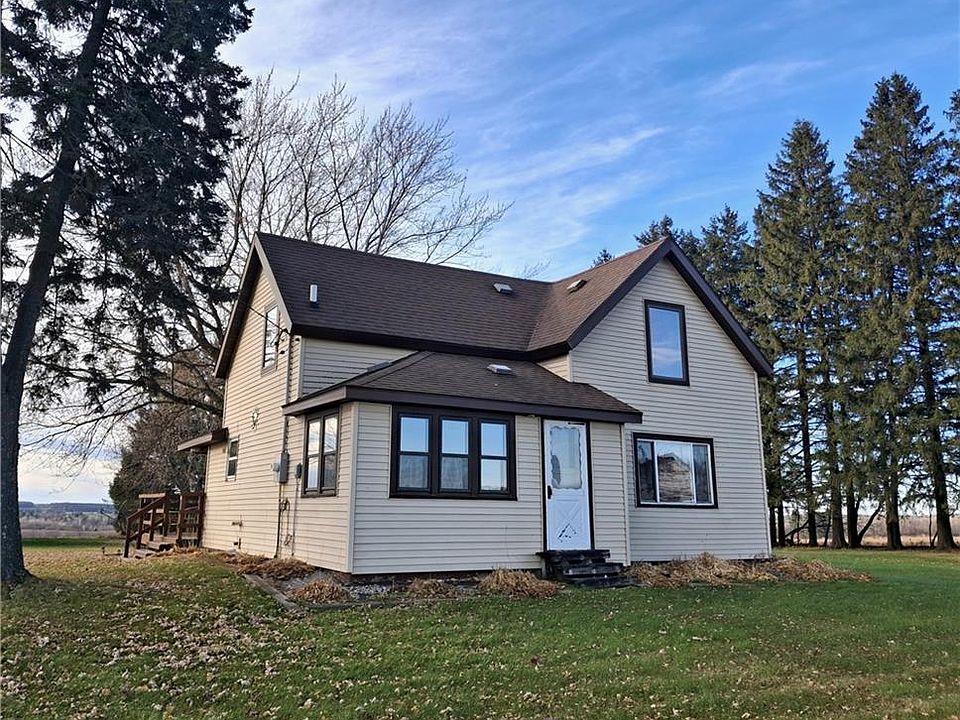 Country Living with nice views and a great location to Rice Lake and Barron. This 3 Bedroom, 2 Full Bath home offers a Large kitchen with updated cabinetry and countertops. Main floor bedroom. Main floor bath. Main floor laundry. Very Large updated full bath plus 2 more additional bedrooms upstairs with walk-in closets. Large 2 Car Garage with additional storage and sliding doors. Large Deck. Brick Patio. Park like setting. Beautiful Views. Older (23X14) shed. Additional thickly wooded 1 acre lot included. Conveniently located to schools, hospital and shopping. Selling is AS-IS Condition.