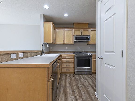 Darling move-in ready Forest Grove townhome. Interior features kitchen with microwave, dishwasher, gas range and free-standing KitchenAid fridge. Light and bright dining room with huge windows looking out on backyard. Living room with backyard access and fireplace. Upstairs includes primary suite with walk-in closet, 2nd bedroom with closet and bay window, 3rd bedroom and bathroom complete upstairs. Backyard with patio makes for easy maintenance.