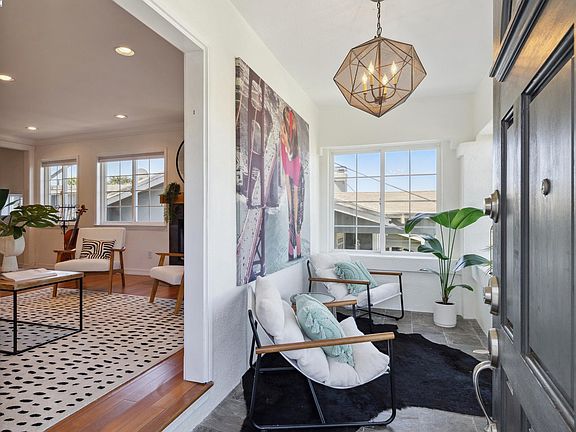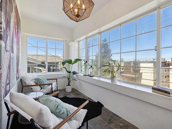 A sanctuary in the city, this renovated 4+BD/2BA craftsman offers exceptional two-story indoor/outdoor living with an urban oasis backyard and views of downtown Oakland. Set back from the street, the 1680 sqft home welcomes you with an enclosed porch with views of the Oakland skyline. The spacious flexible living and dining area boasts an electric insert fireplace, gorgeous hardwood floors, and mullioned windows. Perfect flow leads to the upgraded eat-in kitchen with laundry area. Through the sliding glass door, step into the backyard for true California living. Dine al fresco, play on the grass, and enjoy the fruit of the huge trees in this wonderful outdoor space with both sun and shade. Back inside, the first floor is complete with a full bath flanked by two large bedrooms, while upstairs two more bedrooms share a full bath. Both have sliding glass doors onto a long balcony overlooking the yard, creating more indoor/outdoor living. The primary bedroom also offers 2 closets and an alcove. Above the large one car garage, find another room ready as another office, workshop, playroom, or storage. Out your front door, enjoy Lake Merritt, downtown Oakland, the Grand Lake district’s shopping, dining, movies, and farmers’ market, & easy commuting with 580, transbay buses, or BART.
