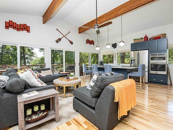 Lake Summerset Waterfront! Very newly updated living areas with extensive room for guests. Hillside setting with nice bay views as you look over your own private dock and 81' of deepwater shoreline. Great room with vaulted ceiling. Three walls of windows looking out on the water and surrounding trees. Wrap around deck. Very new 2.5 car detached garage. Modern design in an old school setting. Spiral stairs to lower level lead you to the bunk rooms and generous family area with wet bar.  Walk out lower level to the lake and patio. Summer's not even here yet! Plenty of time for you, family and friends to enjoy all the amenities Lake Summerset offers.