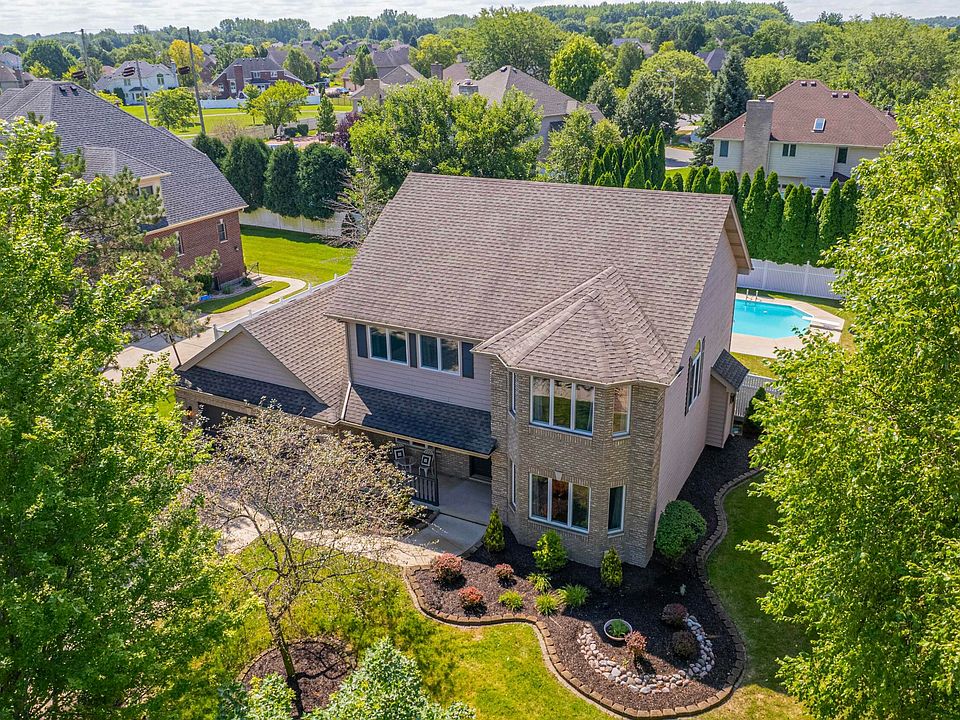 Price reduction! POSSIBLY THE BEST VALUE IN WHITE OAK ESTATES! FANTASTIC, MUNSTER LOCATION just steps away from a park, playground and walking trail! Convenient and quick access to the highly desired Munster schools & a shopping district. This CHARMING home is nestled on a quiet street and offers the perfect blend of accessibility and tranquility. Warm, inviting and LIGHT FILLED spaces THROUGHOUT this home. Main floor offers a spacious entry, hardwood floors flow into the dining room and living room area. The GREAT ROOM has a gas fireplace, new carpet and great views of the backyard! A powder room and finished laundry room is also on the main level. Eat-in kitchen with ample cabinets and storage, center island and stainless appliances. Upper level includes 4 bedrooms, 2 full bathrooms both with double sinks, the primary bedroom is complete with an en-suite bathroom, new frameless shower door, whirlpool tub, double sinks and walk-in closet. ALL bedrooms have large windows and beautiful views of the outdoors. The FINISHED BASEMENT has tons of space for everyone to enjoy with an entertaining area, wet bar, bathroom, office space or 5 th bedroom and loads of organized storage space. The 2.5 car garage has a fantastic attic storage area; and easy access with a convenient pull down ladder. MANY UPDATES THROUGHOUT this home! New and completely replaced ( Dec. 2023) LENNOX high efficiency, air purification system furnace, replaced duct work with dual zones, programmable thermostat, whole house humidifier. New RHEEM 55 gallon HWH 2023, in ground pool liner 2018 ( 10 year warranty) also new ( 2018) UPGRADED 1/5 HP Hayward SUPER PUMP, Earth filter with updated internal filter NEW ROOF 2016, new battery back up sump pump. ENJOY A STUNNING AND PRIVATE BACKYARD THAT IS FULLY FENCED w/ PERGOLA AND AN 18 x 36 INGROUND POOl! SELLER IS OFFERING A 1YEAR upgraded HOME WARRANTY that includes pool coverage.