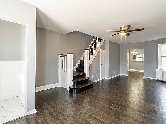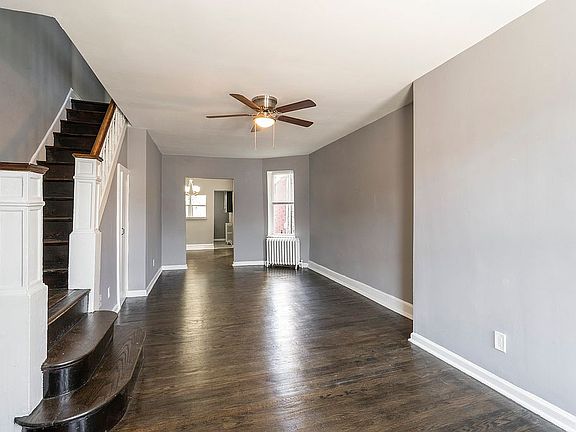 Prepare to be impressed when you enter this newly renovated 4 bedroom, 1 and a half bathroom townhome located in northeast Philadelphia. Upon entering, you are welcomed into a bright living area with refinished, original hardwood floors and fresh paint throughout. Moving through the living room, you will find the dining room that boasts a charming built-in china cabinet. The cut-out in the wall connecting the kitchen and dining room is perfect for entertaining company. The brand new kitchen features updated cabinets, modern hardware, and new stainless steel appliances. The beautiful staircase leads you upstairs to the 3 bright bedrooms and gorgeously renovated full bathroom with a beautiful shower. Each bedroom has new laminate floors, fresh paint, and a ceiling fan. The master bedroom features a large bay window that warms the entire room with natural light. The bathroom has been renovated with a gorgeous, oversized shower and new fixtures. In the fully-finished basement you will find the remaining bedroom and half bath. This home also features a large, fenced in backyard perfect for summer cookouts and entertaining.