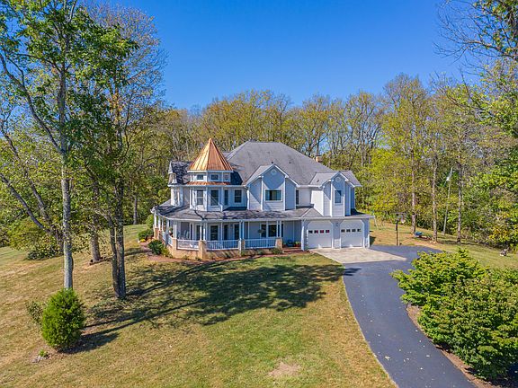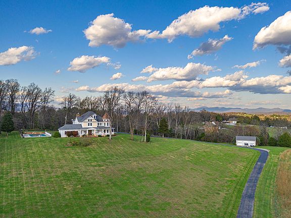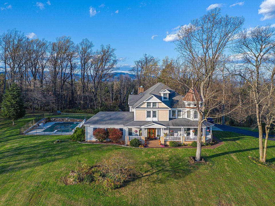 VICTORIAN BEAUTY overlooking 21 acres. Majestic mountain views and gorgeous sunrises from wrap-around porch. 2 story entry with exquisite oak staircase. Mostly hardwood floors on first level. Spacious rooms.. Lots of windows. 9 ft ceilings. Remodeled 16X33 rec/family room with plumbing for full bath downstairs. Ideal for billiards. 2 entries to the pool yard and gardens. Salt pool installed 2017. Gazebo in wooded area overlooks pool. Underground spring and small stream on property. Ideal for livestock. 3 car detached garage with water/electricity could be converted for horses. Be sure and see the 3D virtual tour!