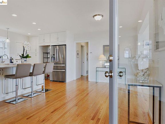 New Listing! Stunning Upper Oakmore Mid-Century. This beautifully updated two bedroom, one and a half bath home features an open floor plan and dramatic panoramic Bay views. The home's indoor-outdoor connection is enhanced by a view deck adjoined to the living room, just perfect for entertaining or relaxing. The dining room is wrapped in banks of windows displaying a spectacular view from every vantage point. The kitchen island is sure to be the hub of activities and family parties. The master bedroom is spacious and the second bedroom's French doors open to a private deck. Perched above the street, this all level gem is sunny and private. A large two-car garage, air conditioning and ample storage complete this home. You are just minutes to transportation, Montclair Village, parks, restaurants and shops.