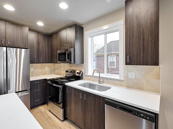 We designed this new townhome with your needs in mind, starting with keyless locks on the front door and on every bedroom. (Fumbling for keys or getting locked out? Never again.) We outfitted the kitchen and the 4 bathrooms (yes, that's one for every bedroom) with the best luxury materials, including quartz counters and stainless steel appliances. The air-conditioned living room even includes a pre-mounted 70" TV. Each room in the house has an independent heating system, and every bedroom also has ethernet wiring and a keyless locking doorknob. There's a washer & dryer inside, and also an attached garage. You'll have our own secure package delivery box, so your online orders will always be safe from porch pirates. The attached photos were taken during construction last year. This home is PET-FRIENDLY! For each pet, there is a $20 monthly fee and a one-time $225 refundable deposit. We are a small company, and we work hard to give personalized service! Sarah will be taking care of all your needs from your first showing through your final move-out. Call or text us now to schedule your live or virtual showing! 7/6/2025 to 7/6/2026; $35.59 monthly fee covers garbage; Pets allowed with fee and deposit