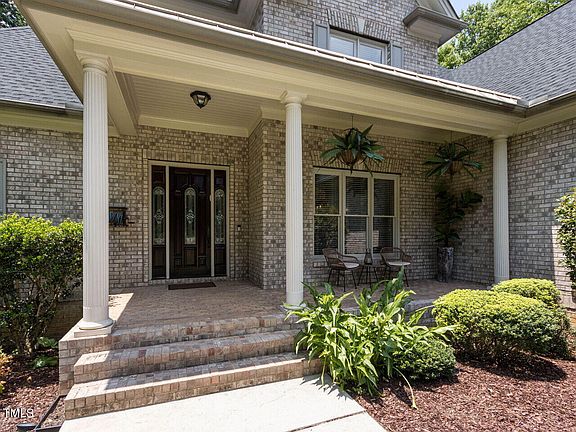 Gorgeous Galloway Executive Home! Situated on a sprawling 1.3-acre lot, the home epitomizes luxurious living with privacy and breathtaking tree-lined views. Lot is large enough and suitable for a pool build. Boasting 4 bedrooms and 4.5 baths, this meticulously crafted residence includes a fully finished basement complete with plumbing for a full kitchen, ideal for multi-generational living or entertaining. Inside, the home has been recently refreshed with NEW paint and boasts NEW luxury vinyl plank flooring in the basement and plush new carpet in the master bedroom. Main level has beautiful hardwoods with inlay design. Expansive mill work and Upgraded lighting throughout the home. The heart of the home is its GOURMET kitchen, complete with a NEW GAS cooktop, GRANITE, SS APPLIANCES, ISLAND, BAR, WALK IN PANTRY and BUTLERS nook. Primary bedroom is located on the main level has TRAY ceiling with lighting, SPA like en suite bath with RAINFALL shower, soaking tub, HIS AND HERS separate sinks, private commode, and large walk in CLOSET with built in shelving. The interior layout is designed for both functionality and elegance, expansive walk-in attic storage, and a host of additional amenities including a media room, rec room, and an inviting office space. A cozy porch and a charming 3-season room provide serene spots to unwind and enjoy the natural beauty of the property. Perfect for modern lifestyles, the home is equipped with a 3 Car garage wired for an electric vehicle and is located in a sought-after pool community, offering both a blend of comfort and convenience. Approx. 30-35min to RDU, RTP, RALEIGH and the new APPLE campus.