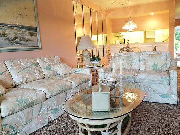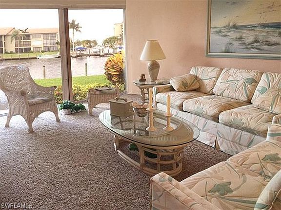FANTASTIC WATER VIEWS - over looking 200+ feet wide canal with direct access to Gulf of Mexico. Seldom available lovely 2 bedroom 2 bath condo unit. Tastefully furnished, open floor plan, turn key and MOVE IN ready. Freshly painted with new carpeting with private screened Lanai. Enjoy privacy in this quiet and peaceful 55+ community. One story building with covered parking outside your doorstep with lush landscaping. Laundry in unit. HOA $355/mo includes cable, water and sewer. Amenities include heated community Pool and Clubhouse, dock space for boats. Great location near restaurants and shopping, walk to park, off Beach Pkwy. Hurry, you simply won't find a better price on a 2/2 condo offering this combination of location, view and boating.