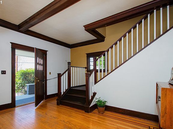 Classic Mt Tabor Beauty, Modern Updates, Amazing Location! Lovely front porch opens to formal Entry & Living rm w/original Woodwrk, Built-ins & Woodstove. Formal Dining rm w/Box beam ceiling opens to Gourmet Kitch. Kitch features Big eat around island & French dr to spacious, sunny deck. 3 light-filled Bedrms up w/City & Tabor views.Updated Baths on 2nd & Main fl. Lower lev Family rm, office space,laundry & storage. Sweet, private Bkyrd w/raised planting bed. 1-Car Garg. 3 blks to Mt Tabor Park! [Home Energy Score = 4. HES Report at https://rpt.greenbuildingregistry.com/hes/OR10190668]