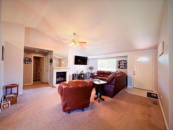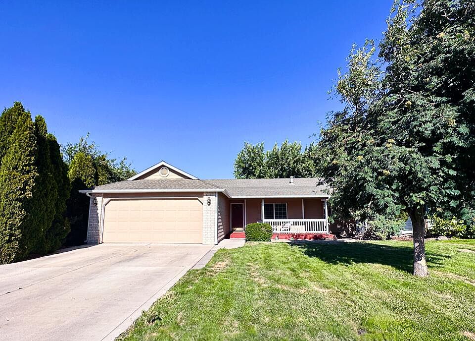 Well maintained single level home located in Whitehorse subdivision. This 3 bedroom, 2 bathroom home has vaulted ceilings with an open kitchen and dining room giving it a large and flowing lay out. The primary bedroom is located on the opposite side of the house from the other bedrooms. The interior and exterior have been painted in the last 2 years. Newly replaced wood blinds and updated appliances throughout the home. The garage is outfitted with shelving to help keep organized, garage door opener and a 240-volt air compressor plug. The front landscaped yard has underground timed sprinklers as well as a covered front porch. In the back, the fully fenced yard includes a firepit as well as a 8x12 shed for storage. This is a must see home!