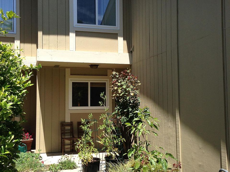 Beautiful, private townhome in a small, quiet complex. Home has a relaxing patio with generous gardening space, as well as a two car attached garage (includes front loading washer and dryer). Includes an AC window unit, with new double-paned windows and sliding doors, lovely hardwood floors, a travertine fireplace, large closets and storage throughout, programmable thermostats, remodeled kitchen and bathrooms. Primary bedroom has a nice walk-in closet with built in drawers and shelves. Second bedroom and closet are also generously sized. There is a half bathroom downstairs and a shared bathroom upstairs with skylight. Great Mountain View schools and parks are walking distance. This is a very convenient location with easy access to Cal train, freeways, downtown, Stevens Creek and Shoreline biking trails. Tenant pays utilities. No pets / No smoking. First and last months rent with security deposit due at signing.