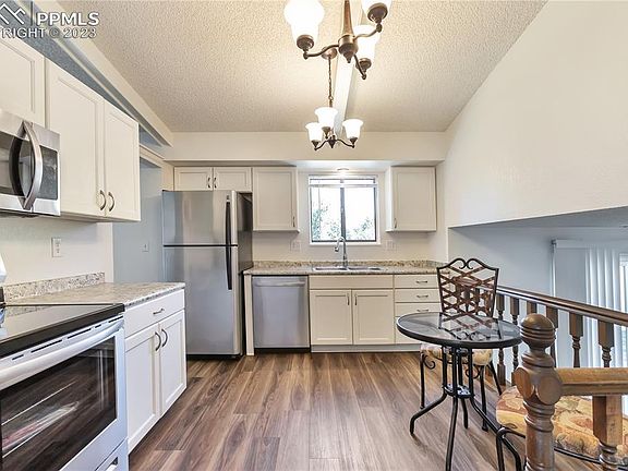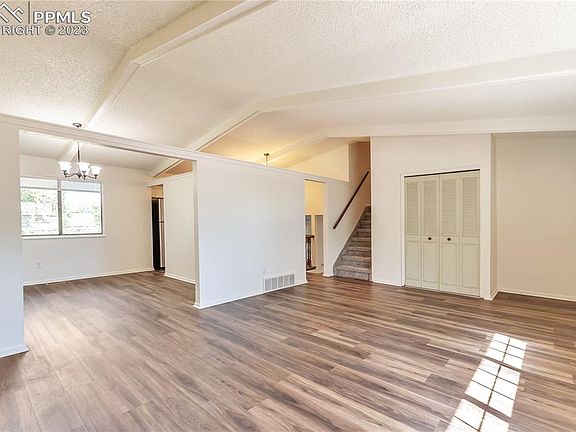 Welcome to this beautiful, spacious home which is conveniently located just minutes from everything you need in Colorado Springs. It sits on a large lot with a newly landscaped front yard, a fully fenced backyard, and a concrete back patio. Inside you'll find a formal living room and dining room with vaulted ceilings. The kitchen is also located on the main level. Just a few steps down, you'll find the family room with a wood-burning stove to help with heating bills on cold nights. On this level, you will also find a 1/2 bath and laundry area. Off the laundry room, you will enter an oversized garage with workshop space. One more level down, you will find a spacious 2nd family room and utility room. The upper level has 3 bedrooms, one with a private bath and another full bath in the hallway. This home has just had multiple new windows installed, a new sliding door in the family room, a new kitchen stove, a fresh coat of interior paint, and new carpeting making it ready to move in and call your own.
