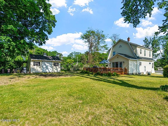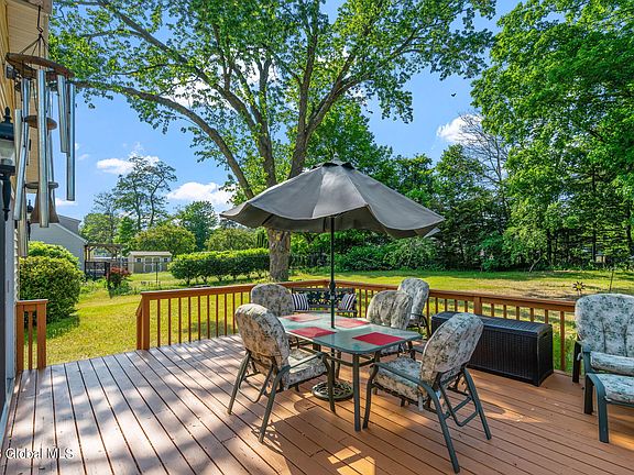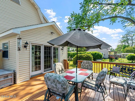 A charming country-style Dutch colonial. A hidden gem tucked away in Rotterdam. The exterior features a classic gambrel roof, dormer windows, and a welcoming front porch that invites you to sit and enjoy the lovely surroundings. Inside, the home is warm and inviting with a darling foyer, hardwood floors, and a large living room and formal dining room. The kitchen is spacious and features custom cabinetry, a bakers dream with tons of counter space and storage. A nook with vaulted ceilings, skylights and French doors over looking the deck and yard. The bedrooms are cozy and comfortable, with plenty of natural light. The backyard is spacious with a large deck, mature trees and a lush lawn that's perfect for outdoor gatherings. Located in a cul de sac, plenty of street parking for visitors.