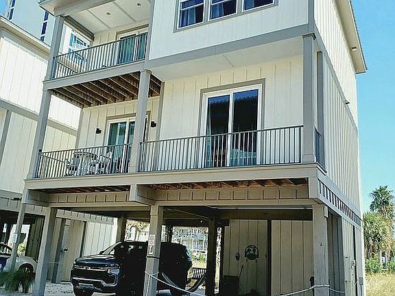 Gorgeous beach house across the street from Gulf of America and on Little Lagoon! Best of both worlds! 2 bedrooms and 3 full baths. Bunk bed nook on main level and a brand new queen sleeper sofa. Non rental, but can be rented! Great water views from 2 balconies! Sold mostly furnished. Great views of the ocean and Little Lagoon from the 2 balconies! Its the 3rd one in from the beach!