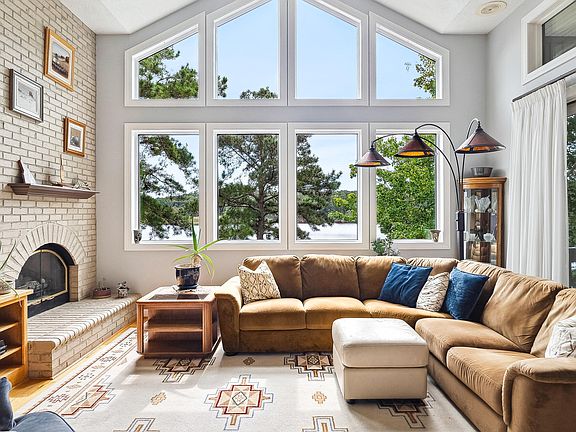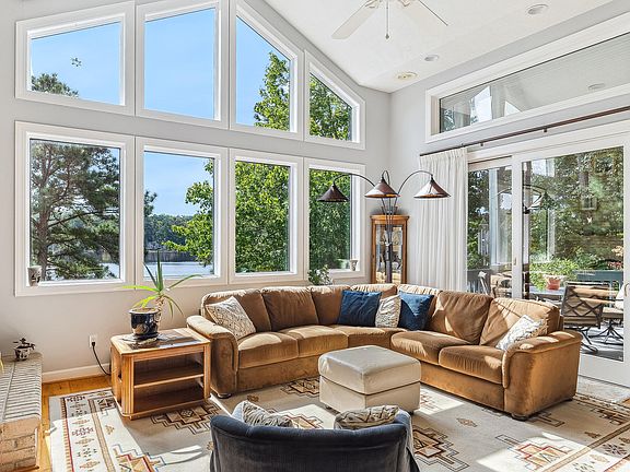 Retreat to the spacious owner's suite, featuring a generous walk-in closet and sliding doors that open onto the large deck, where you can soak in the serene views. The primary bathroom is a true spa-like retreat, with a large soaking tub, a beautifully tiled shower with glass doors, and double vanities with ample storage. On the lower level, a private suite with its own exterior entrance provides extra privacy and flexibility. Throughout the home, a cathedral ceiling and numerous windows showcase unobstructed views, especially in the oversized family room with a cozy fireplace. This exceptional home combines lakefront living with an active, outdoor lifestyle.