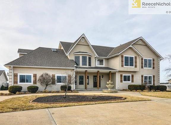 UNBELIEVABLE 10-car detached garage has approx 5500sqft FINISHED space complete w/hydraulic lift, partial kitchen, 2 lofts & office space plus full bath. AMAZING 5 beds/3.1 baths, attached 3-car garage ESTATE HOME on 9.61 acres w/pond. Approx 7200+sqft home boasts a kitchen w/granite tops & stone tile back splash, 2 counter top stoves, & dbl ovens that overlooks gorgeous country sunsets at the rear of property. 6 fireplaces throughout! Master bed w/INCREDIBLY HUGE CLOSETS! A RETREAT only 15 minutes from Olathe!