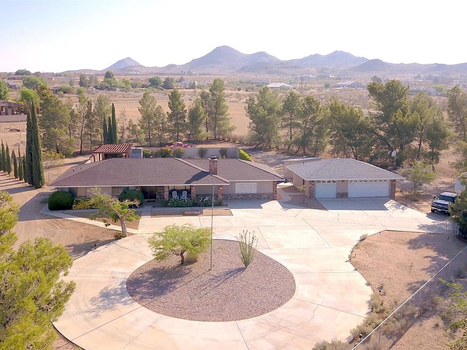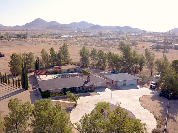 Desirable Desert Knolls home on 1.5 acres surrounded by pines trees. This home is fully fenced and cross fenced with a lovely gated entry. 3 good size bedrooms, sunken living room with a real fireplace. Kitchen (with upgraded Wolf cooktop) is off the dining area that opens to your gorgeous patio and pool court. The pool area is surrounded by a privacy block wall and has plenty of room for outdoor living. The home has a large great room, perfect place for hanging out, movies, parties or office space. Newly remodeled master bathroom, is super cute. The detached garage is extra large with a workshop area and 3/4 bath. The outside entry makes it a perfect for use when you area having pool parties. Lots of usable land for other outdoor needs you have....places for cars, RVs, plus a small shed. Newer roof, septic and HVAC. This house is ready for you to move in. Just add for your personal touches.