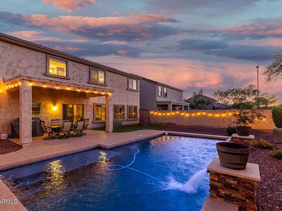 Refreshing sparkling pool just in time for summer! Ask about seller concessions!!! This incredible 4-bed + flex room/Den home with a sparkling pool awaits you! cozy front porch, & 3-car garage. Formal living/dining room, wood & tile floors, & soothing paint. The flexible den is ideal for an office, while the loft & family room are equipped w/ surround sound speakers. The immaculate kitchen has a center island, a walk-in pantry, wood cabinets, ample counters, recessed lighting, & built-in microwave. Oversized main suite boasts a beautiful bathroom with a separate tub/shower, a walk-in closet, & dual sinks. There's a convenient Jack & Jill bathroom! Spend your days in this fabulous backyard featuring a blue pool, artificial turf, & a covered patio. Seller is open to concessions!!