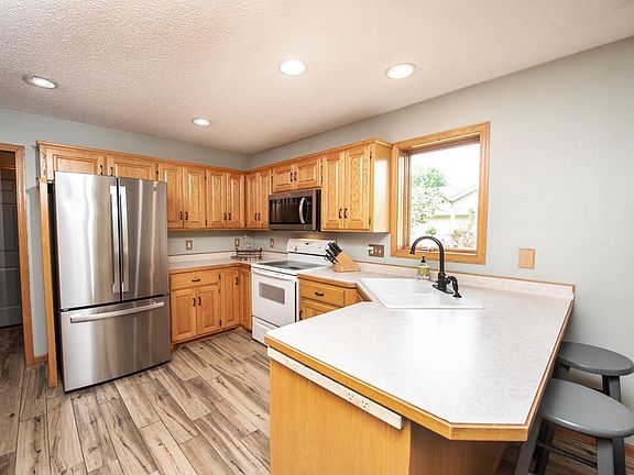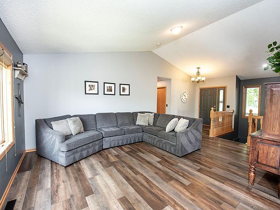 One level living on quiet cul-de-sac location! Spacious deck overlooks large fenced backyard with foundation landscaping and firepit. Note the oversized concrete driveway and oversized bedrooms. Primary bedroom offers ceiling fan and walk in closet. Fully finished walkout lower level features family room gas fireplace, custom tiled shower, and fresh paint. This home has a newer roof and is located in the desirable Elk River school district. Don’t miss out on this one!