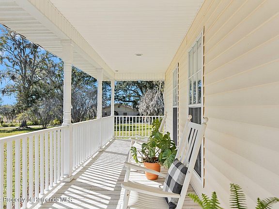 AMAZING VIEWS from this STUNNING 2-story, 4BD/3BA, MOVE-IN READY, custom farmhouse with wrap-around front porch which is nestled in the large Live Oak trees on 3.2 HILLTOP acres on Yontz Road...one of the most desired roads and one of the highest hills in Hernando County!! Don't miss the turn off of Yontz into the property when you're distracted by the incredible views!! Built and owned by one of the county's prominent families who helped create the coveted Royal Oaks Subdivision off Yontz Road. When the roads in the county are named after you and your family members...you know you are part of Brooksville's history! If the wrap around porch doesn't captivate your senses the 18' soaring ceilings with balconies when you enter the foyer and in the great room surely will! These high ceiling with the large windows and glass french doors let in a lot of natural light making this home feel light, bright, spacious and incredibly comfortable! The brick wood-burning fireplace in the great room warms the home and the ambiance the room exudes! This white farmhouse kitchen is open to the breakfast room with bay windows and french glass doors with real wood floors...it looks like the pages of Southern Living Magazine! The home offers a formal dining room and spacious laundry room with sink and counter space, too. The large master suite (20.9x12.9) is downstairs with a walk-in closet and an ensuite bathroom which offers dual sinks, a garden soaking tub, and a walk-in shower! There is a large second bedroom (20x11.3) downstairs and a full bathroom downstairs, as well. Walk up the wood staircase and you'll be on the balcony overlooking the impressive great room. The upstairs offer two large bedrooms (both are 12.9x21.3) with beautiful dormer windows and each have two closets! There is a full bathroom upstairs, too. When you're ready to enjoy your evenings, step out back on your brick paver patio (42x14) and enjoy the hilltop breeze while you grill out and relax with a glass of wine! The large home offers 2,806 sq ft of living space; 3,366 total sq ft. The property is 3.2 acres which is mostly cleared with large Live Oak Trees that offer shade and privacy to the home!! This home is loved and well-maintained! New roof in 2016. 3 AC units; two are new. NO FLOOD. NO HOA and zoned AG...so full freedom with this zoning! Bring your horses, animals, RV, boat, ATVs...bring it all!! Located just minutes from Historic Downtown Brooksville which is like a small town in a Hallmark Movie! Lots of antique shops, cafes, coffee shops, local restaurants, arts and crafts shows, festivals, parades, and even horse-drawn carriage rides and the lighting of the tree at Christmas! A short drive to Homosassa and Crystal River and you can eat on the water, swim in the springs with the manatees, go fishing, kayaking and boating! 12 minutes to the Suncoast Parkway for easy and quick access to Tampa. 45 minutes to Tampa International Airport! 1 hour 15 minutes to TOP US BEACHES! 20-25 minutes to kayaking the clear Weeki Wachee River, enjoying Buccaneer Bay Water Park, and watching the sunsets at Pine Island! You'll forget you're in Florida when you see these views on Yontz Road in front of the 2-story farmhouse! Come see for yourself! Call now to schedule a showing!