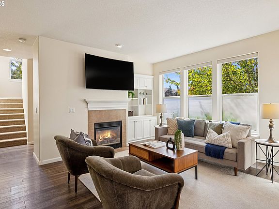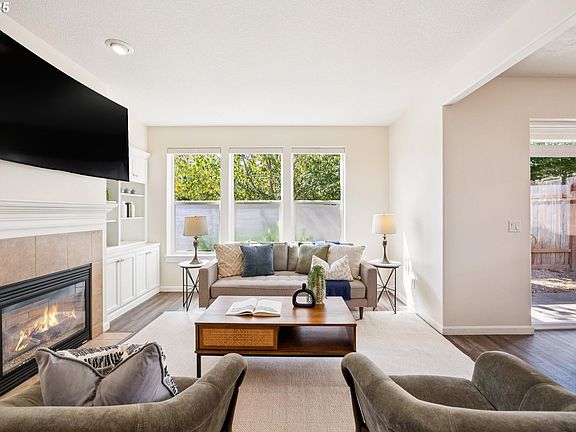 Welcome to this charming 3-bedroom, 2.5-bath Craftsman-style home located on a bright corner lot in one of Oregon City's most desireable neighborhoods. Built in 2007, this well-maintained home combines classic architectural details with modern updates for comfortable living.Step inside to an open and inviting floor plan featuring fresh interior paint and brand-new carpet throughout. The light-filled great room offers a cozy gas fireplace flanked by built-in bookcases—perfect for relaxing evenings or entertaining guests.The kitchen is open to the dining and living areas, creating a seamless flow. Upstairs, you'll find three generously sized bedrooms, including a private primary suite with a walk-in closet and en-suite bath.Enjoy outdoor living in the fully fenced backyard, complete with a hot tub for year-round relaxation. The corner lot provides added privacy and yard space. Located near parks, schools, and community amenities. This home offers comfort, convenience, and timeless style in a sought-after neighborhood.