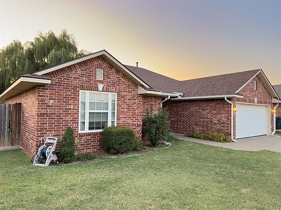 The Timbers in Shawnee has prime location with quick access to Highway 177, I-40 and a very short drive into town and to OBU. This brick home is located at the end of the cul-de-sac, with a large backyard and fire pit ready to go for the fall weather. Updates include: new roof, shed, kitchen sink, dishwasher, and microwave all in 2023. The stove, refrigerator, washer and dryer were added in 2021. All appliances will stay with the home. Each bedroom comes with a walk-in closet. The primary bedroom has two walk-in closets and an updated bathroom. Floors in bedrooms have a carpet cover but are not carpeted. The bedrooms have the same flooring underneath that is in the living room. This well maintained home is move-in ready!